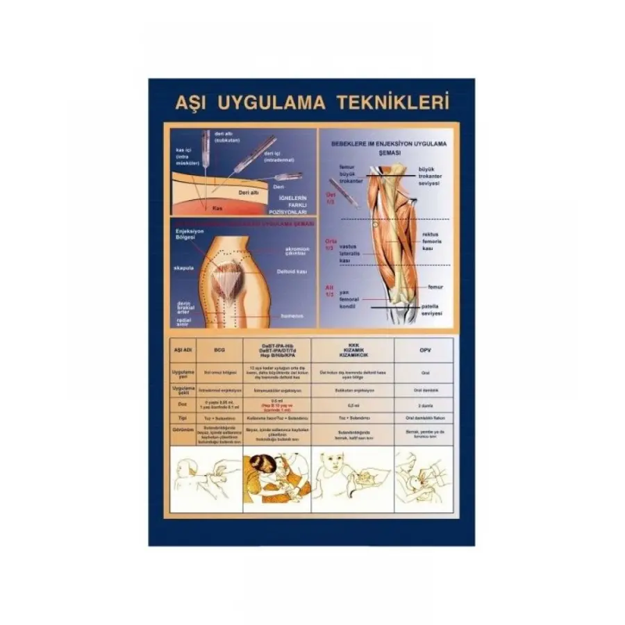 Aşı işleminin nasıl yapılması gerektiğini en ideal şekilde anlatan aşı uygulama teknikleri talimatnamesi özel olarak hazırlandı. A4 boyutunda birinci sınıf kuşe kağıda renkli baskı uygulanarak hazırlanan bu talimatnameyi hemen sepetinize atabilirsiniz. Üzerinde hem yazılı metinlerin hem de görsel çizimlerin yer aldığı talimatname aşının nasıl yapılması gerektiğini adım adıma aktarıyor.