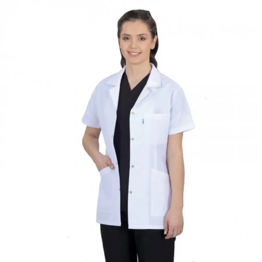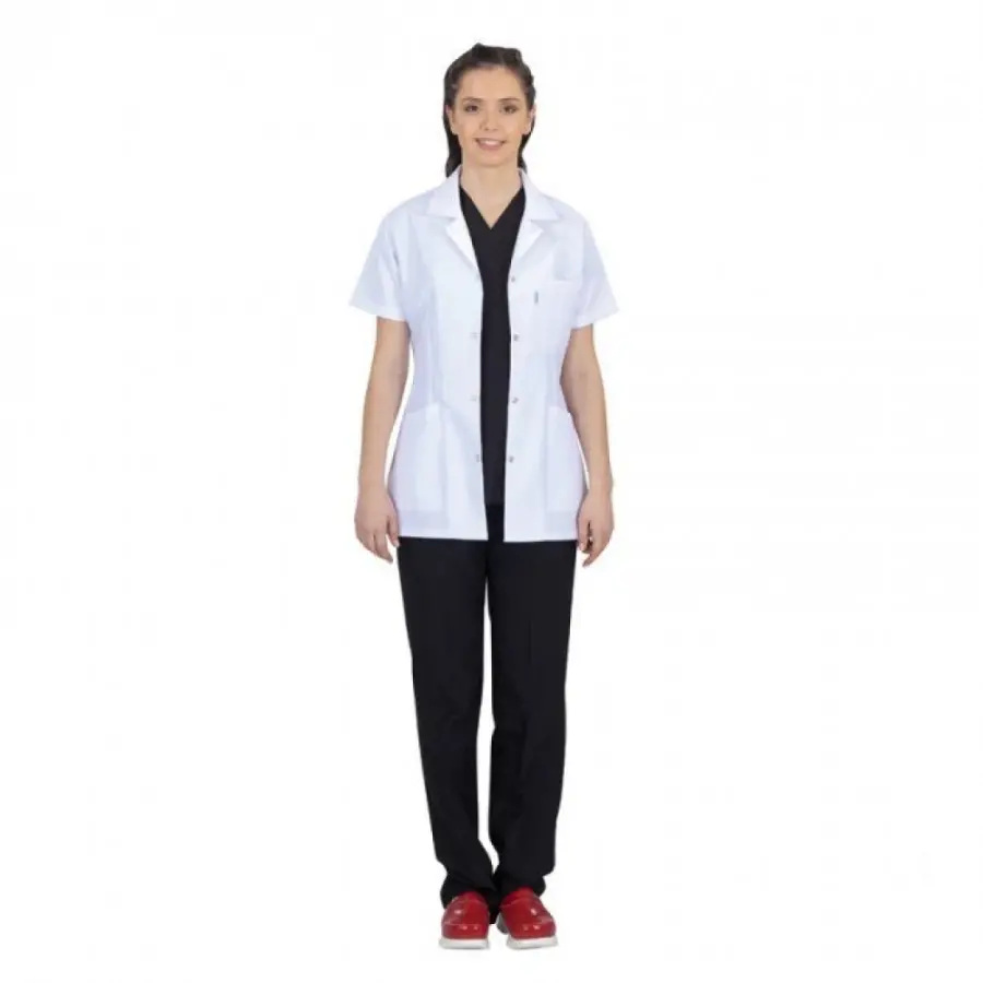 Sağlık kuruluşlarının tüm birimlerinde üniforma olarak kullanıma uygun olan kısa önlük modeli özellikle laboratuar çalışmaları esnasında kullanım için son derece idealdir. Kısa kollu ve kısa formu sayesinde hareket özgürlüğünü kısıtlamaz, rahat bir kullanım şansı sunar. Önlük modellerinde vazgeçilmezlerden biri olan gömlek yaka bu tasarıma da kazandırılmıştır. Vücuda tam olarak oturan özel kesimi sayesinde sıklıkla tercih edilen bir bayan önlüğü modeli haline gelmiştir.