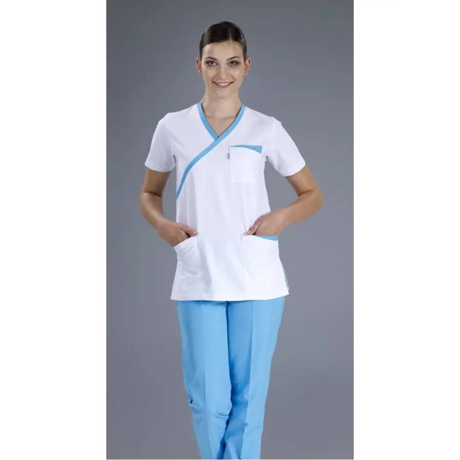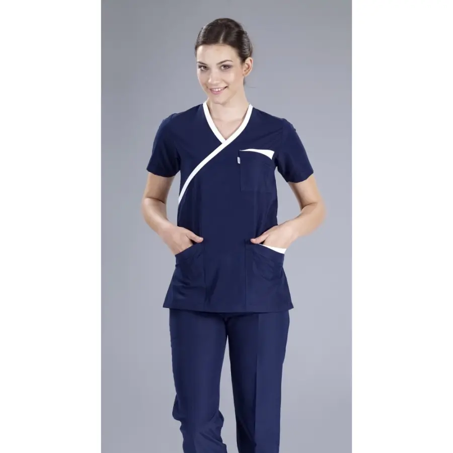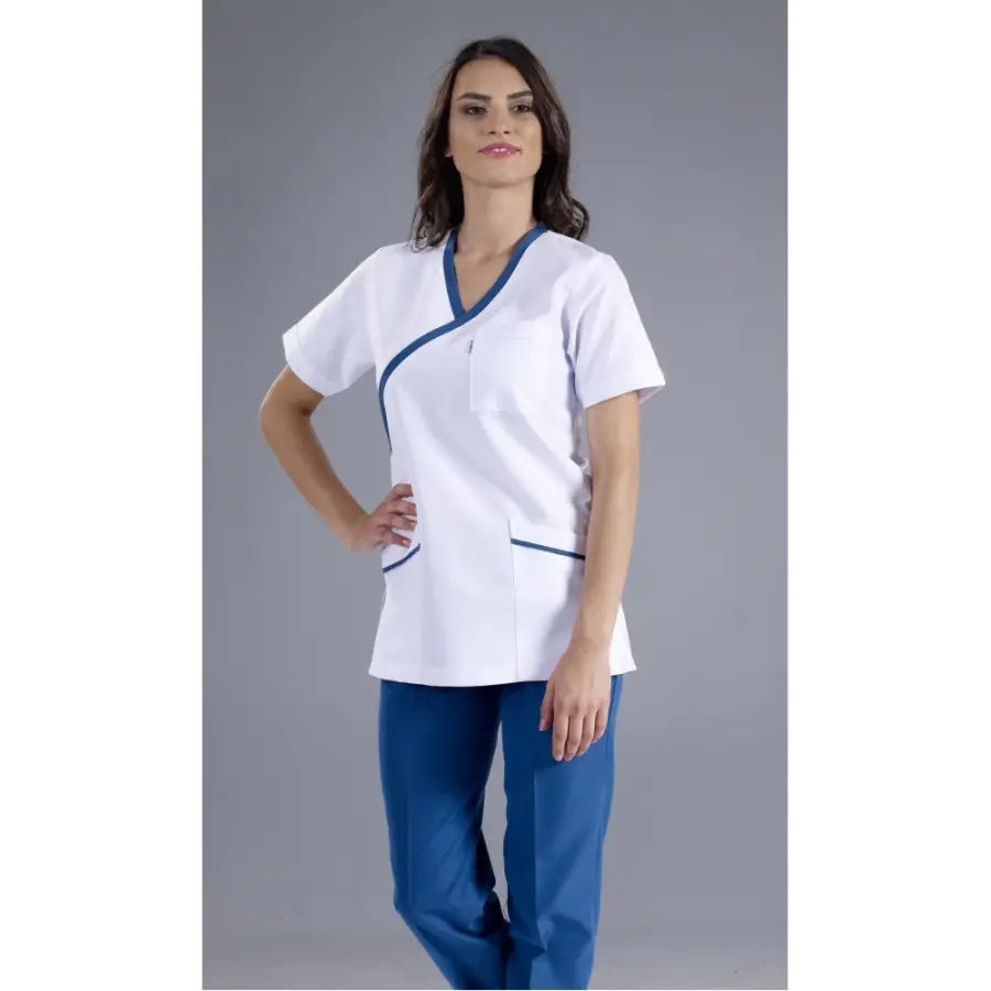 Bayan sağlık görevlileri için özel olarak tasarlanmış olan kruvaze yaka takım hem şık hem de estetik bir görünüm sergiliyor. Hemşire forması olarak da kullanıma uygun olan takım modeli alt ve üst olmak üzere toplam 2 parçadan oluşuyor. Kolaylıkla giyilip çıkarılabilen takım kruvaze tarzında yaka modeli ile dikkat çekiyor. Alpaka kumaş kullanılarak dikilmiş olan takım modeli terlemeye neden olmaz ve yılın tüm aylarında kullanıma uygundur.