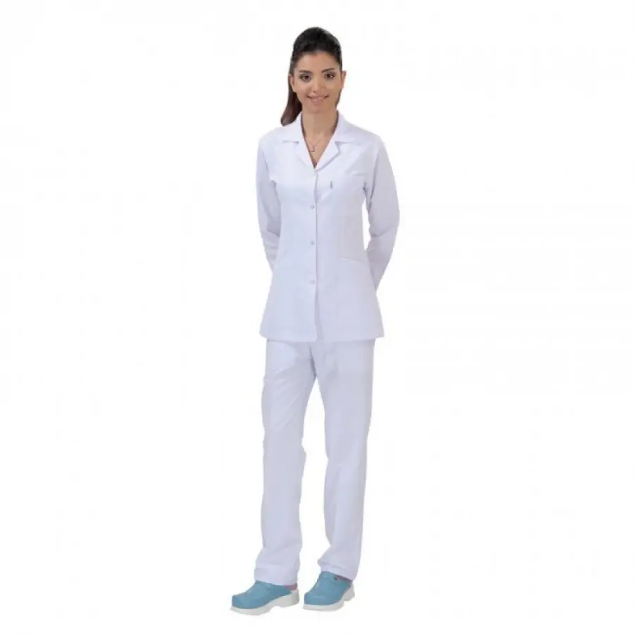 Zarafetinden ve şıklığından ödün vermek istemeyen bayan sağlık görevlileri tercihi bu takımdan yana kullanıyor. Uzun kollu ve alpaka kumaştan imal edilmiş olduğundan yılın tüm mevsimlerinde giyilebilen takım, sade ancak bir o kadar da şık görünümü ile beğeni topluyor. Hem kapalı olarak üniforma şeklinde hem de önü açık olarak önlük şeklinde kullanılabilen takım hemşire ve doktorlar için ideal bir çalışma kıyafeti olmaktadır.