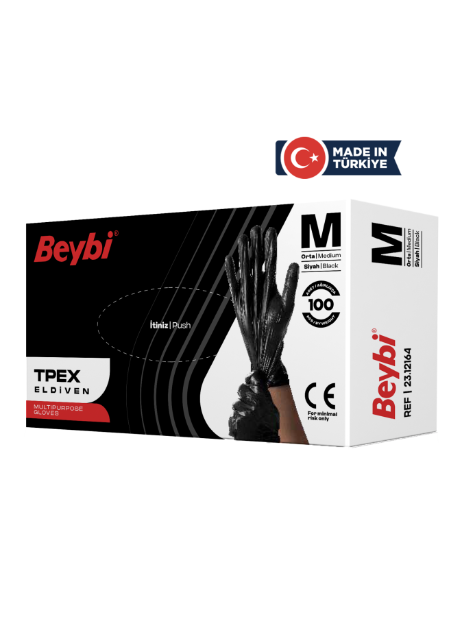 TPEX Siyah Eldiven, hijyen ve dayanıklılığı bir araya getiren, Termoplastik Elastomer (TPE) malzemeden üretilmiş üstün kaliteli bir üründür. TPE, esnekliği, yıpranmaya karşı dayanıklılığı ve hafifliği ile diğer malzemelere kıyasla üstün performans sunar. Bu özellikler, uzun süreli kullanım sırasında konfor sağlarken, geniş kullanım alanlarına uyum göstererek hem profesyonel hem de günlük işlerde pratik bir çözüm sunar. Lateks, nitril ve vinil içermediği için cilt hassasiyetine uygun güvenli bir kullanım sunar. %100 gıda temasına uygun olarak üretilen bu eldivenler toksik madde içermez ve kokusuzdur, bu da özellikle gıda hazırlığı gibi hassas işlemler sırasında güvenli bir kullanım sunar. Çevre dostu tasarımı ile hem profesyonel hem de günlük kullanımlar için mükemmel bir çözümdür.