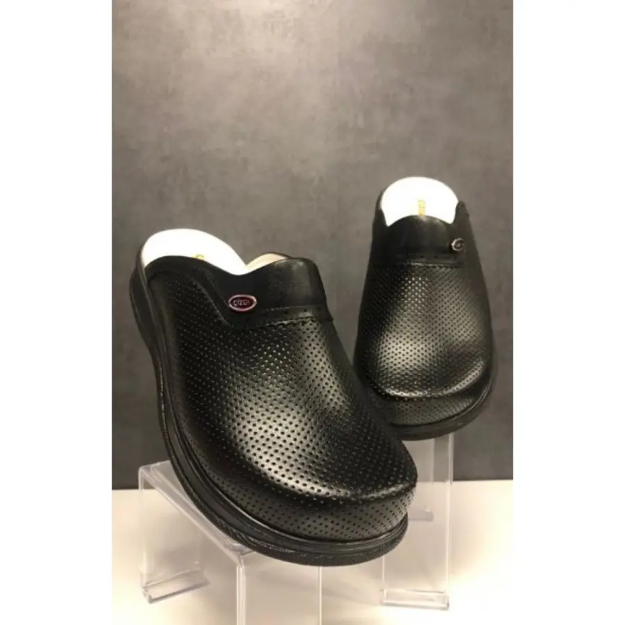 Klasik tarzdan hoşlananlar için ideal bir seçim olacak erkek klasik sabo terlik modeli son derece konforlu bir kullanım sunar. Delikli yapısı sayesinde ayak sağlığınızı koruma altına alan bu terlik tüm sağlık görevlilerinin yanı sıra gün boyunca ayakta kalan tüm erkekler için en doğru terlik seçimi olacaktır. İç yapısından tabanına kadar tüm üretiminde özel malzemeler kullanılan erkek sabo terlik modeli her modelde üniforma ile anında uyum sağlar.
