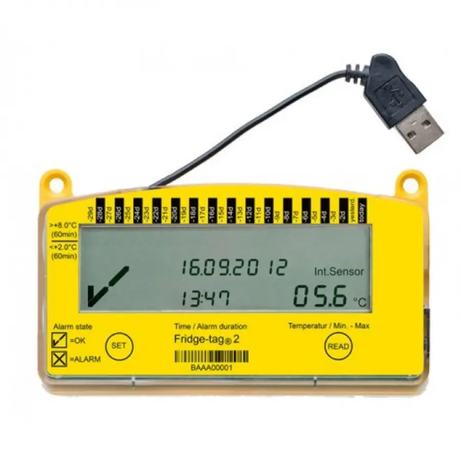 Üst ve alt limit ayarlı alarmıyla yeni nesil fridge tag stoklarımızda! Fridge Tag 2'yi USB ile bilgisara bağlayıp son 60 günlük kayıtlarınızı kolaylıkla inceleyebilirsiniz. Aynı zamanda PC bağlantısı yapmadan direk ekranından son 30 güne ait kayıtları inceleyebilirsiniz.