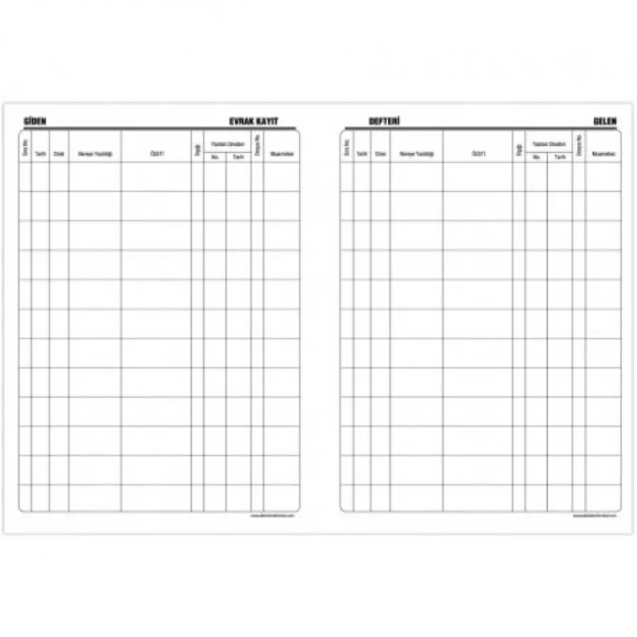 Tüm resmi ve özel kuruluşlarda gelen ve giden evrakların kayıt altına alınması amacıyla tasarlanmış olan gelen – giden evrak defteri pratik bir kullanım sunar. Gerekli olabilecek tüm bilgilerin kaydedilebileceği defter tablo formunda düzenlenmiştir. Bu sayede gerekli verilerin düzenli bir şekilde kayıt altına alınmasını sağlar. Gelen giden evrak defteri toplam 100 sayfadan oluşmaktadır.