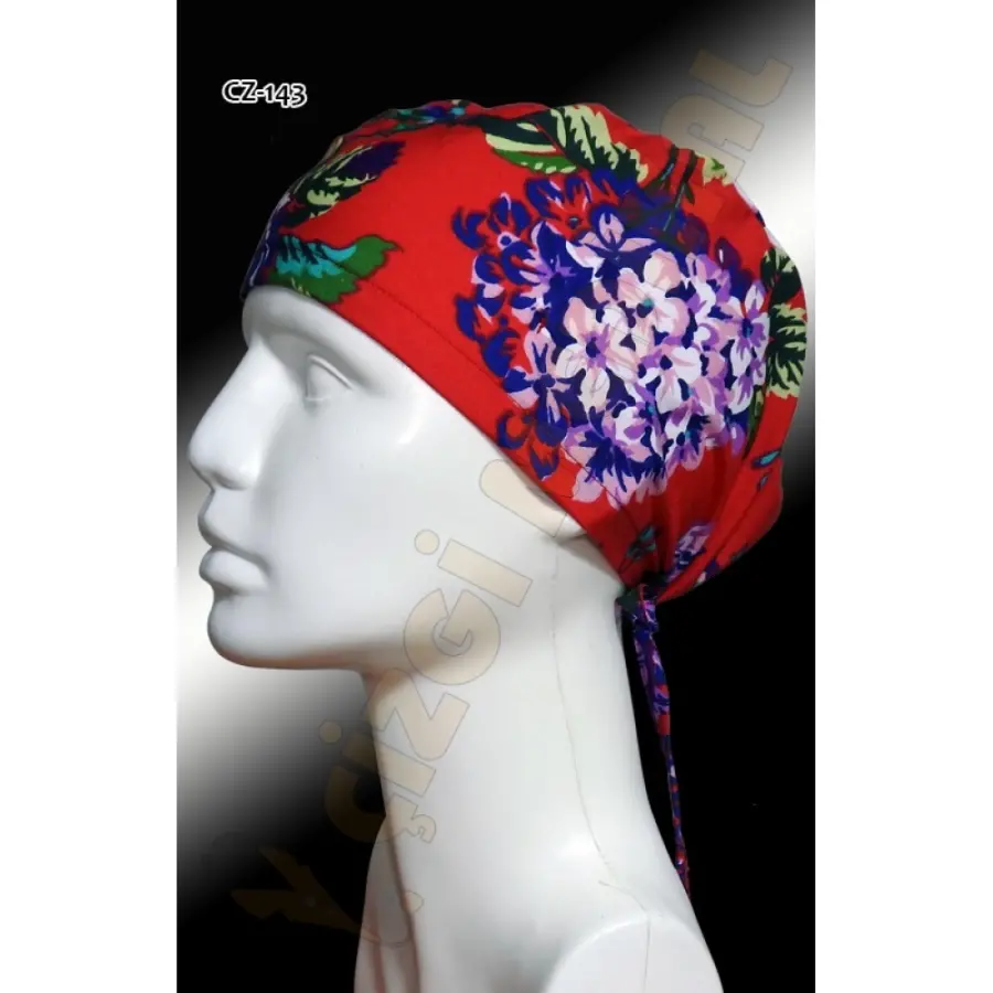 - Gül Desenli Kırmızı Bone kendinden desenli kumaşlardan tasarlanmıştır.