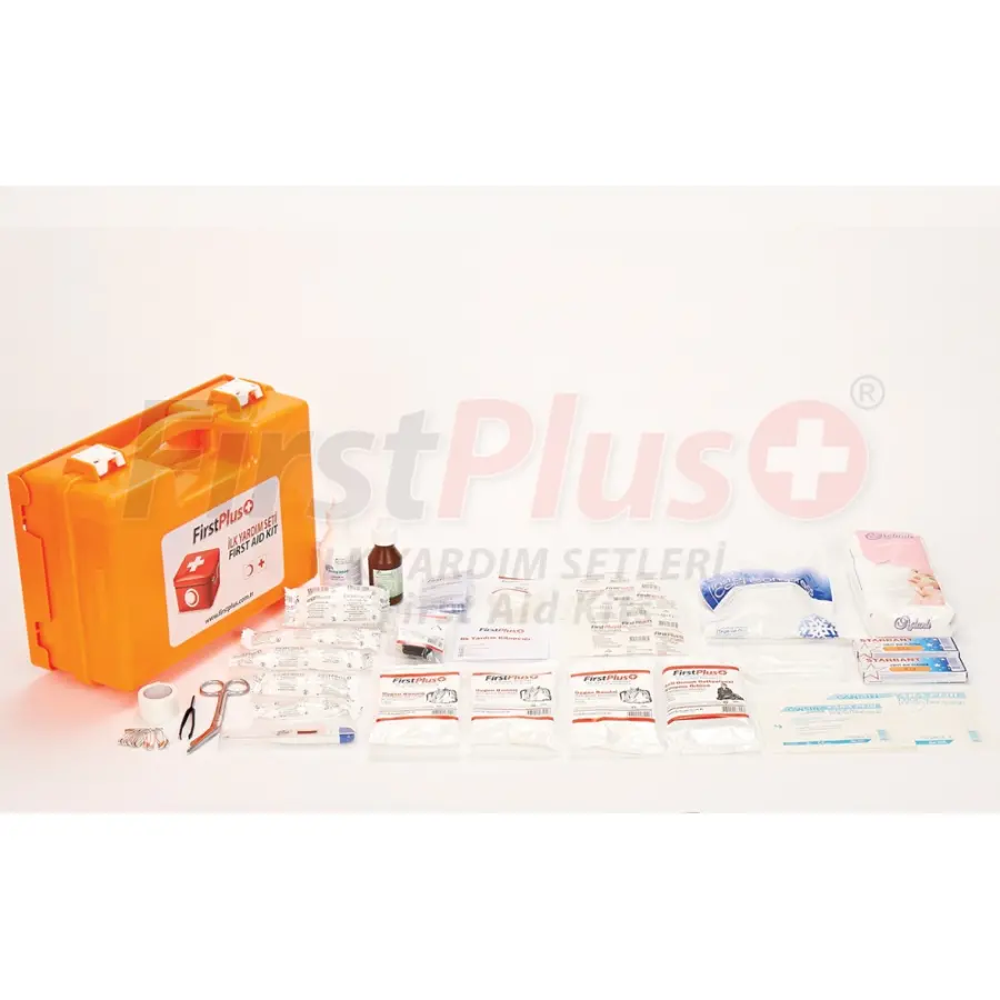 Firstplus marka ilk yardım seti işyerleri başta olmak üzere tüm mekanlarda ve evlerde bulundurulması gereken tıbbi malzemeler içerir. Herhangi bir yaralanma durumunda kazazedeye ilk müdahalenin olay yerinde yapılabilmesi için gerekli olabilecek tüm tıbbi malzemeler ve ürünler set içerisinde mevcuttur.