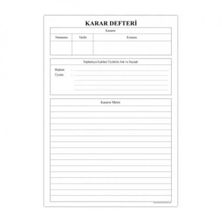 Kararların kayıt altına alınarak sağlıklı bir şekilde muhafaza edilmesi amacıyla tasarlanmış olan ekonomik karar defteri, çeşitli verilerin arşivlenebilmesi amacıyla da kullanıma uygundur. Tüm sağlık kuruluşları tarafından kullanılabilen karar defteri üzerinde kararın numarası, tarihi ve içeriğine dair bilgilerin yazılabileceği alanlar mevcuttur. 220 mm x 315 mm ebatlarında olan defter toplam 80 sayfadır.