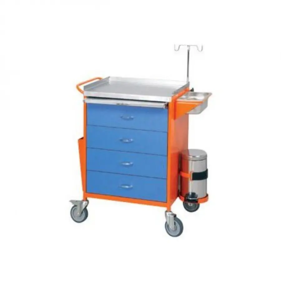 Rahat kullanımı ve şık tasarımı ile dikkat çeken pansuman ve tedavi arabası sac gövdeye sahiptir. Üst tablası ile ilaç hazırlık tablası krom nikelden imal edilmiştir. Ürün 360 derece dönebilen dört adet tekerleği ile kolaylıkla hareket ettirilebilir. Tekerleklerden iki adedi frenlidir. Bu sayede pansuman arabası istendiğinde güvenli bir şekilde sabitlenebilir. Ürünün tüm metal olan aksamı elektrostatik toz boya ile kaplıdır. Böylece korozyona karşı korumalı olup aynı zamanda paslanmaz yapmaz.