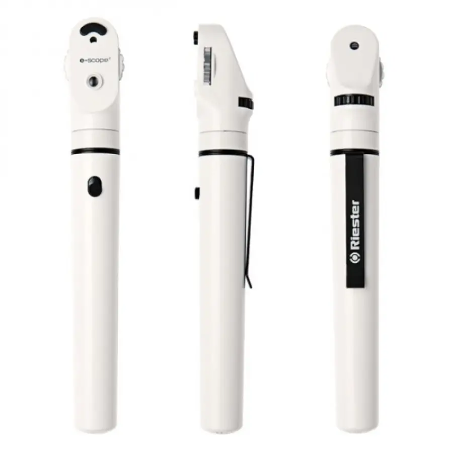 - Riester e-scope oftalmaskop 2,5 v xenon aydınlatma veya 3,7 v led aydınlatma seçeneği sunar.