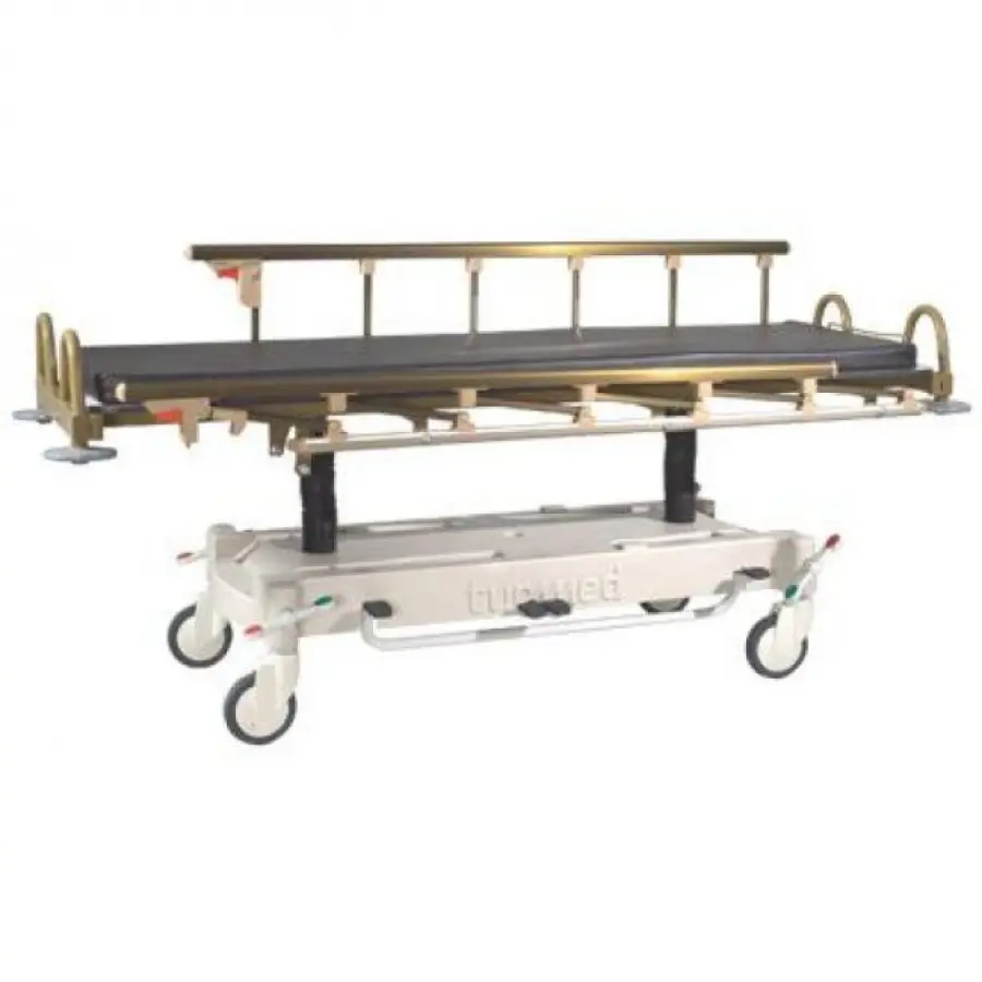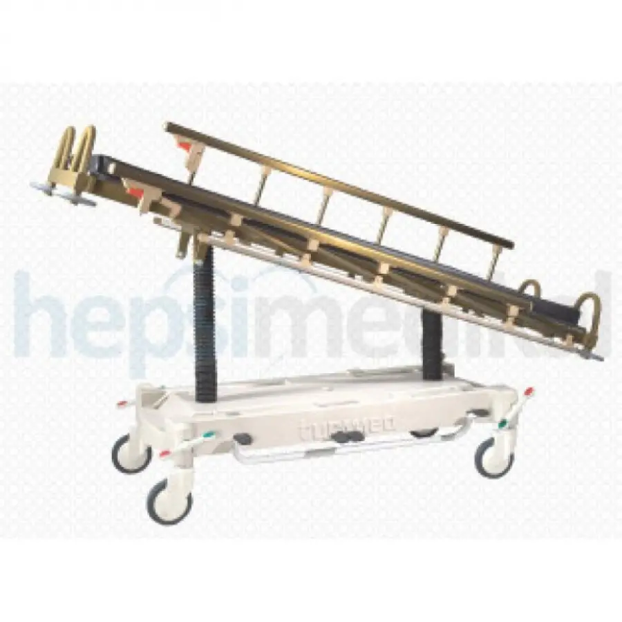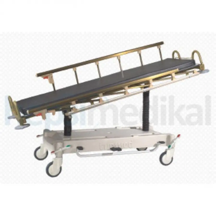 Çift hidrolikli pistonlar yardımı ile ayak ve sırt bölümünün yüksekliği ayarlanabilir. Çift hidrolikli sedye hasta konforu için özel olarak dizayn edilmiştir. Sağ ve sol tarafında bulunan ve açılıp kapanabilen korkulukları alüminyumdur. Serum askılı hasta yatağı olarak da kullanılabilen sedye evde hasta bakımı için de ideal bir üründür. Metal bölümleri elektrostatik toz boya ile kaplı olduğundan paslanma yapmaz. Abs kaplama olan tekerlekleri hastayı sessiz bir şekilde nakletmenizi sağlar. Aynı zamanda alt şasesi de abs kaplıdır. Dört köşesinde çarpmayı önleyen tekerlekler bulunur. Her iki tarafında bulunan pedalları tek hareket ile kilitleyebilirsiniz. Sünger üzeri vinleks deri kaplı şiltesi kolay temizlenir.