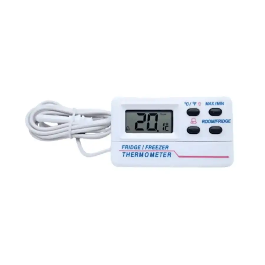 - 1.2 metre uzunluğunda su geçirmez kablolu dış sensör (buzdolabı veya dondurucunun içine yerleştirilerek, ürünlerin saklandığı alanın sıcaklığını hassas şekilde ölçer; sensörün doğrudan soğutucu hava akımına maruz kalmaması önerilir)