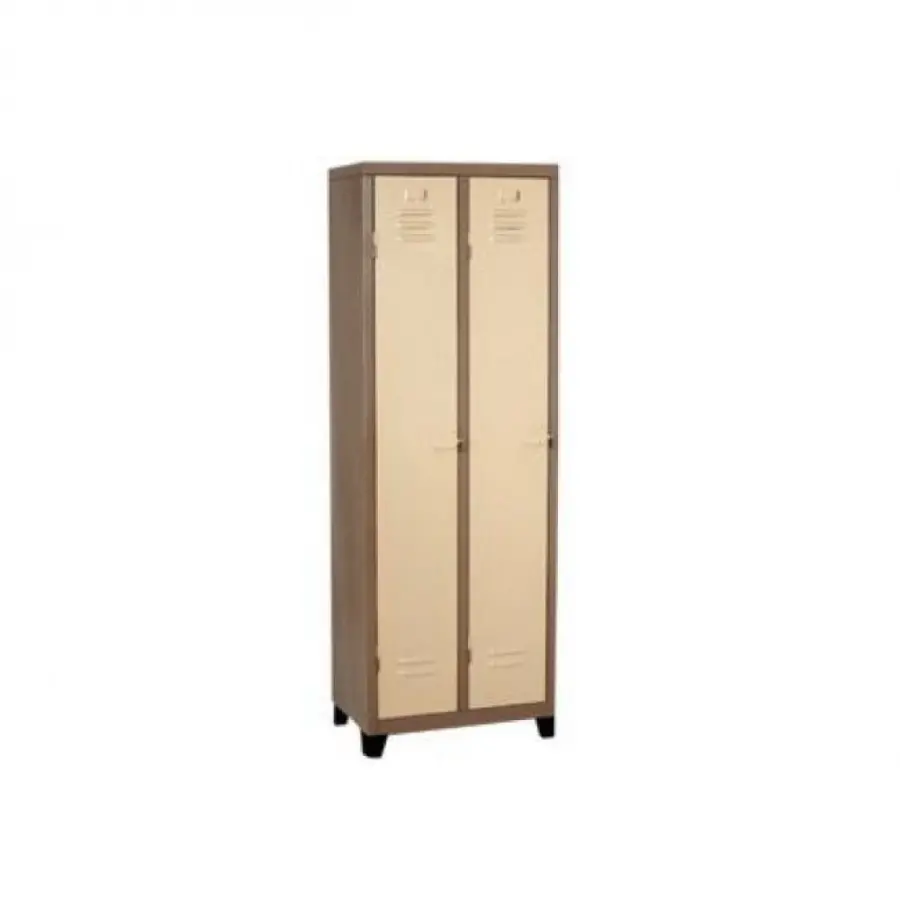 Gövde ve kapakları sac malzemeden üretilmiş olan ikili soyunma dolabı geniş hazneye sahiptir. Tüm malzeme ve kıyafetlerin sağlıklı bir şekilde muhafaza edilmesini sağlar. Kapakların alt ve üst bölümünde hava menfezleri bulunduğundan dolap içerisinde kötü koku oluşumunu önler.
